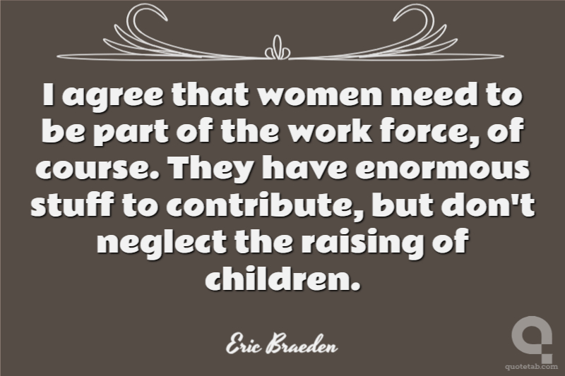 I agree that women need to be part of the work force, of course. They have enormous stuff to contribute, but don't neglect the raising of children.