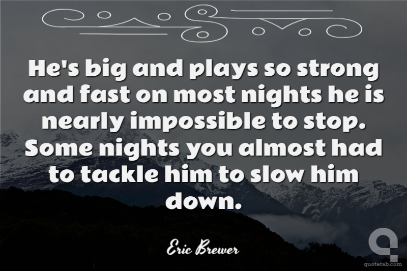 He's big and plays so strong and fast on most nights he is nearly impossible to stop. Some nights you almost had to tackle him to slow him down.