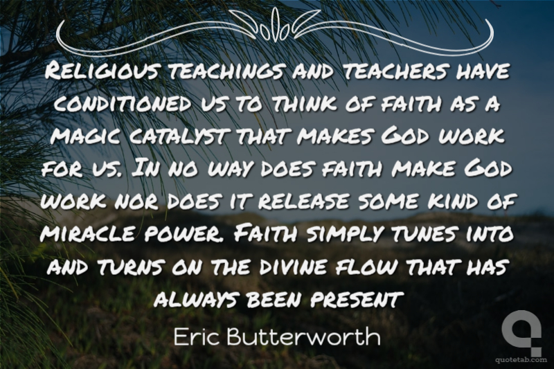 Religious teachings and teachers have conditioned us to think of faith as a magic catalyst that makes God work for us. In no way does faith make God work nor does it release some kind of miracle power. Faith simply tunes into and turns on the divine flow that has always been present