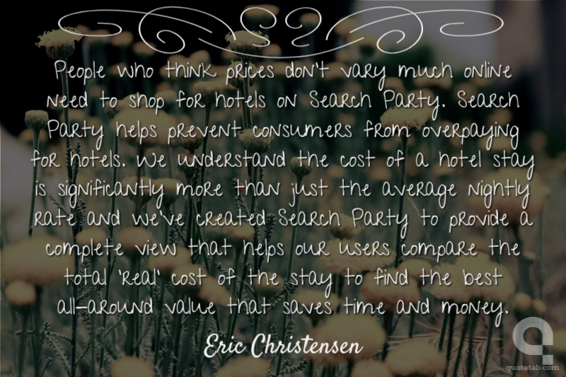 People who think prices don't vary much online need to shop for hotels on Search Party. Search Party helps prevent consumers from overpaying for hotels. We understand the cost of a hotel stay is significantly more than just the average nightly rate and we've created Search Party to provide a complete view that helps our users compare the total 'real' cost of the stay to find the best all-around value that saves time and money.