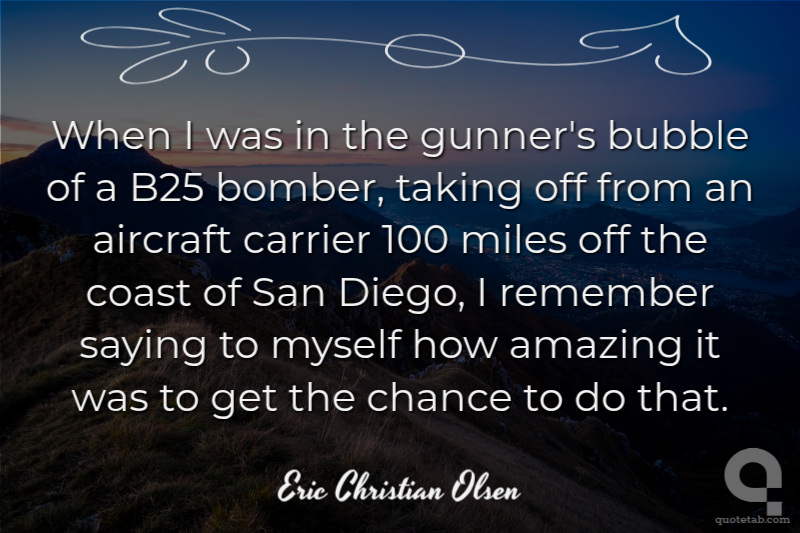 When I was in the gunner's bubble of a B25 bomber, taking off from an aircraft carrier 100 miles off the coast of San Diego, I remember saying to myself how amazing it was to get the chance to do that.