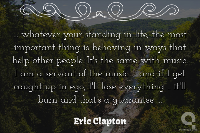 ... whatever your standing in life, the most important thing is behaving in ways that help other people. It's the same with music. I am a servant of the music ... and if I get caught up in ego, I'll lose everything .. it'll burn and that's a guarantee ...