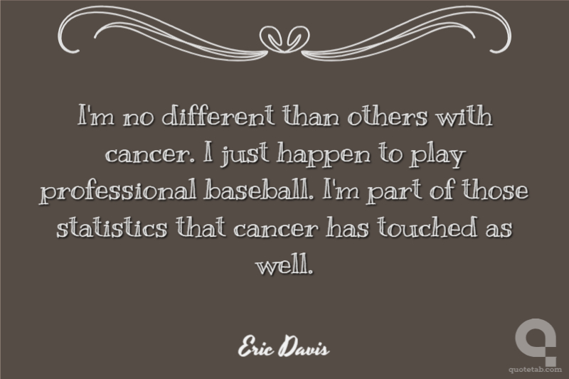 I'm no different than others with cancer. I just happen to play professional baseball. I'm part of those statistics that cancer has touched as well.