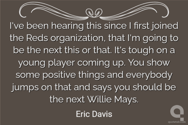 I've been hearing this since I first joined the Reds organization, that I'm going to be the next this or that. It's tough on a young player coming up. You show some positive things and everybody jumps on that and says you should be the next Willie Mays.