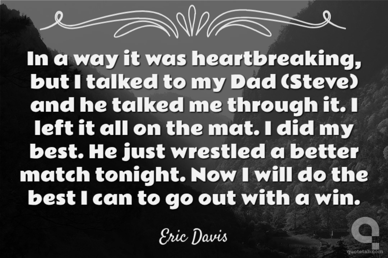 In a way it was heartbreaking, but I talked to my Dad (Steve) and he talked me through it. I left it all on the mat. I did my best. He just wrestled a better match tonight. Now I will do the best I can to go out with a win.