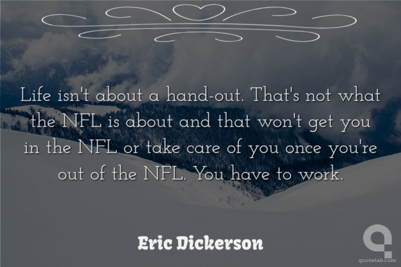 Life isn't about a hand-out. That's not what the NFL is about and that won't get you in the NFL or take care of you once you're out of the NFL. You have to work.