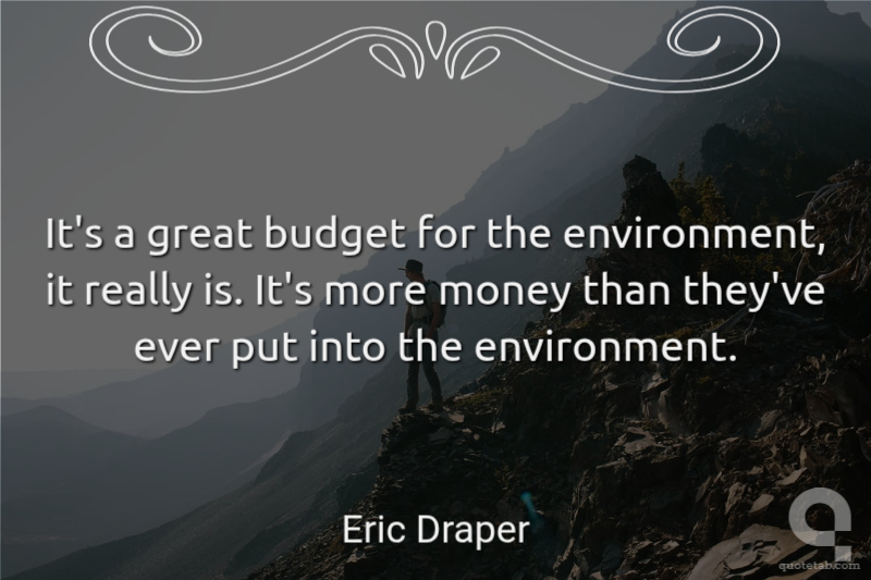 It's a great budget for the environment, it really is. It's more money than they've ever put into the environment.
