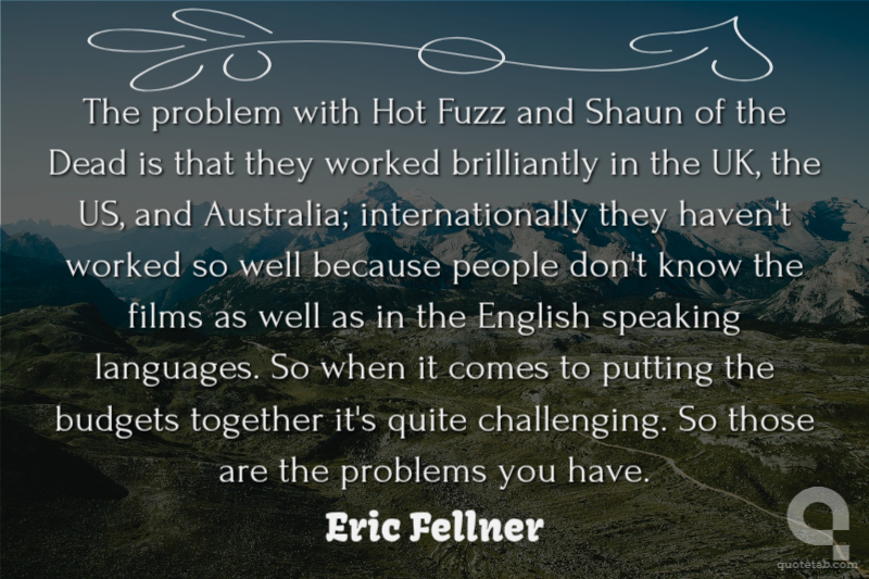 The problem with Hot Fuzz and Shaun of the Dead is that they worked brilliantly in the UK, the US, and Australia; internationally they haven't worked so well because people don't know the films as well as in the English speaking languages. So when it comes to putting the budgets together it's quite challenging. So those are the problems you have.