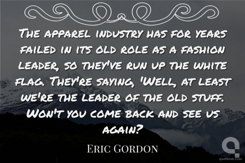 The apparel industry has for years failed in its old role as a fashion leader, so they've run up the white flag. They're saying, 'Well, at least we're the leader of the old stuff. Won't you come back and see us again?