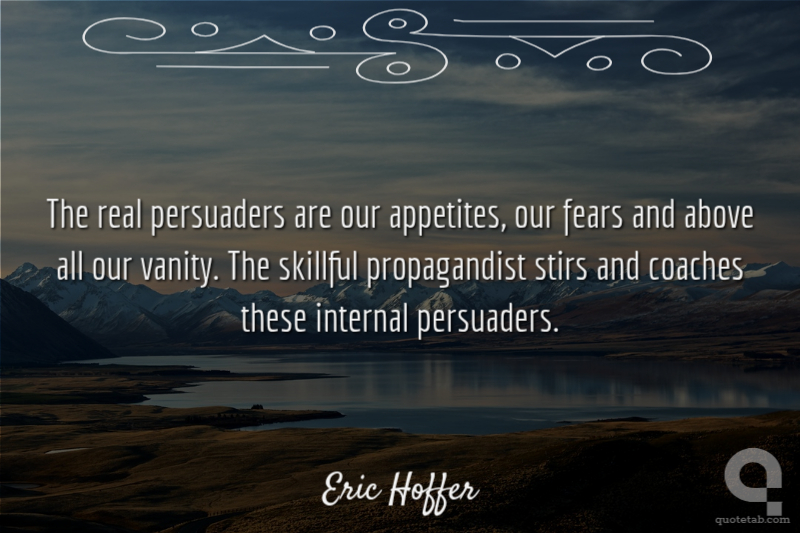 The real persuaders are our appetites, our fears and above all our vanity. The skillful propagandist stirs and coaches these internal persuaders.