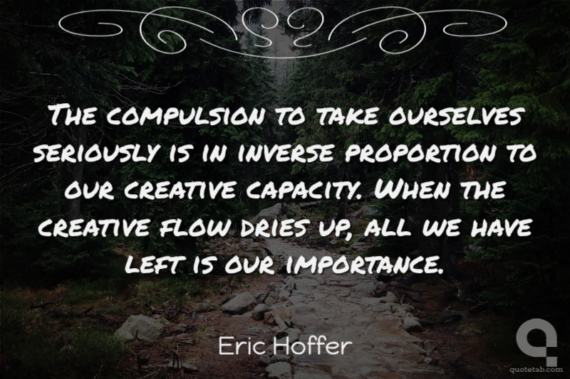The compulsion to take ourselves seriously is in inverse proportion to our creative capacity. When the creative flow dries up, all we have left is our importance.
