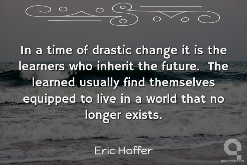 In a time of drastic change it is the learners who inherit the future. The learned usually find themselves equipped to live in a world that no longer exists.
