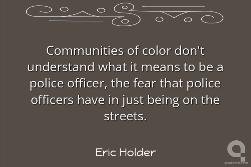 Communities of color don't understand what it means to be a police officer, the fear that police officers have in just being on the streets.
