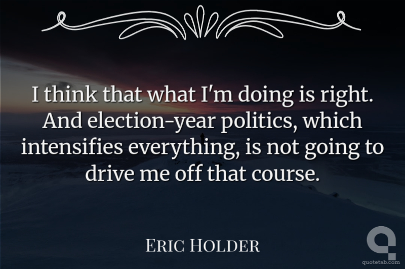 I think that what I'm doing is right. And election-year politics, which intensifies everything, is not going to drive me off that course.