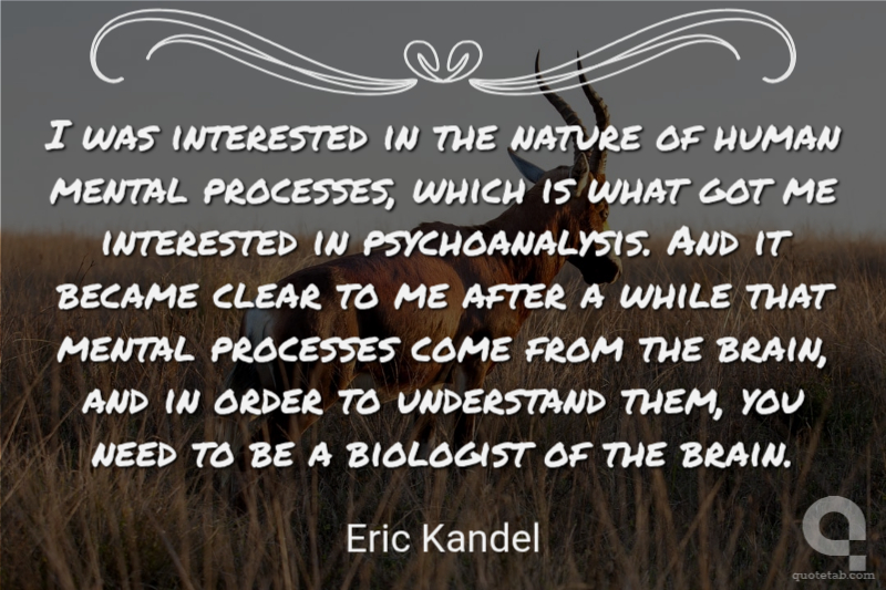 I was interested in the nature of human mental processes, which is what got me interested in psychoanalysis. And it became clear to me after a while that mental processes come from the brain, and in order to understand them, you need to be a biologist of the brain.