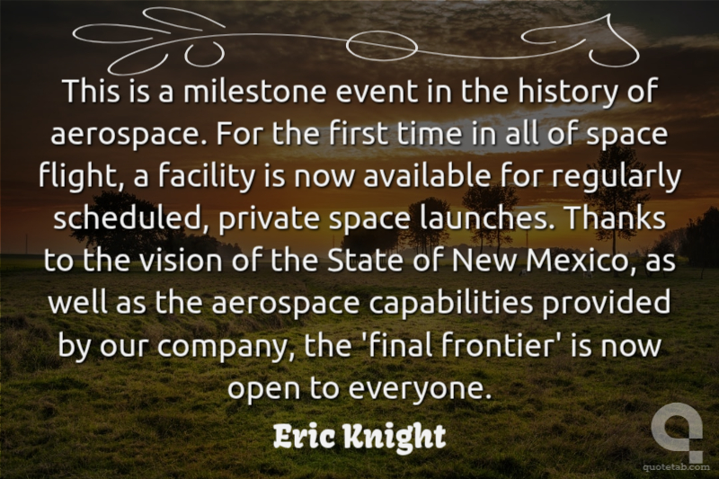 This is a milestone event in the history of aerospace. For the first time in all of space flight, a facility is now available for regularly scheduled, private space launches. Thanks to the vision of the State of New Mexico, as well as the aerospace capabilities provided by our company, the 'final frontier' is now open to everyone.