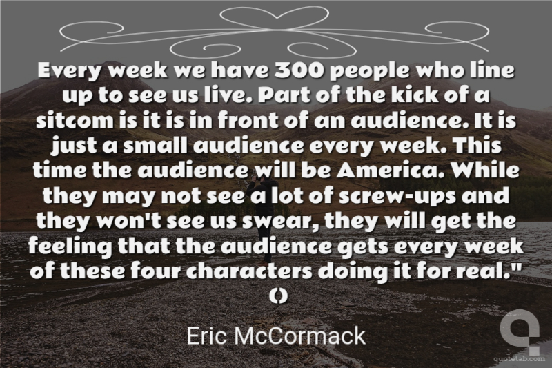 Every week we have 300 people who line up to see us live. Part of the kick of a sitcom is it is in front of an audience. It is just a small audience every week. This time the audience will be America. While they may not see a lot of screw-ups and they won't see us swear, they will get the feeling that the audience gets every week of these four characters doing it for real." ()