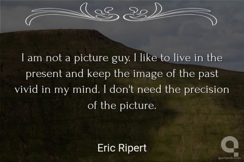 I am not a picture guy. I like to live in the present and keep the image of the past vivid in my mind. I don't need the precision of the picture.