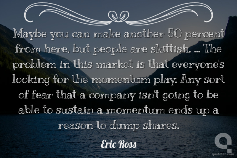 Maybe you can make another 50 percent from here, but people are skittish, ... The problem in this market is that everyone's looking for the momentum play. Any sort of fear that a company isn't going to be able to sustain a momentum ends up a reason to dump shares.