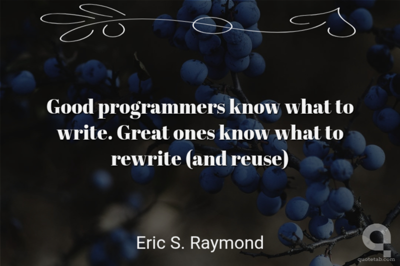 Good programmers know what to write. Great ones know what to rewrite (and reuse)