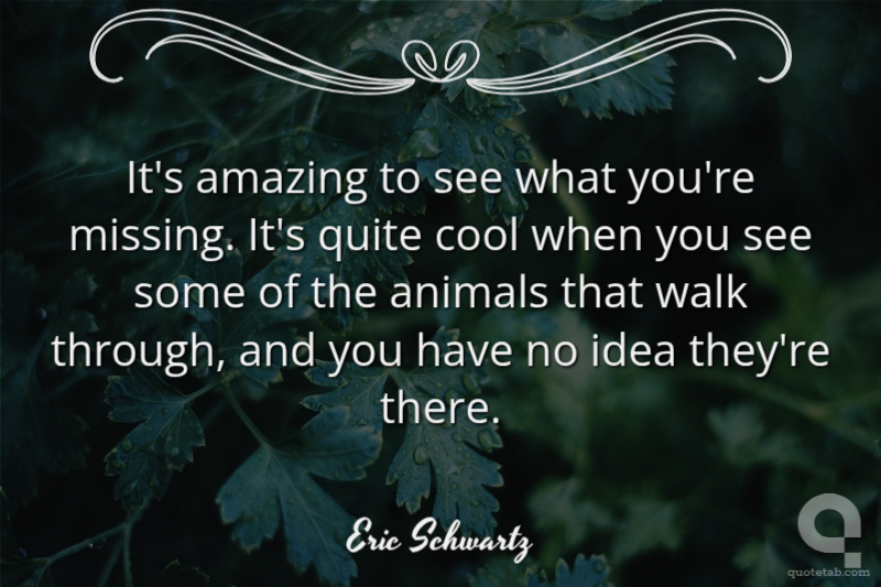 It's amazing to see what you're missing. It's quite cool when you see some of the animals that walk through, and you have no idea they're there.