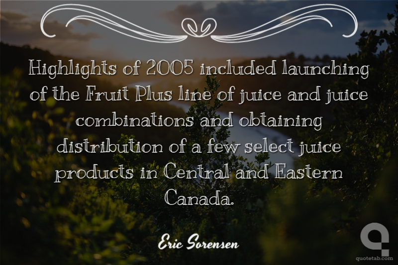 Highlights of 2005 included launching of the Fruit Plus line of juice and juice combinations and obtaining distribution of a few select juice products in Central and Eastern Canada.