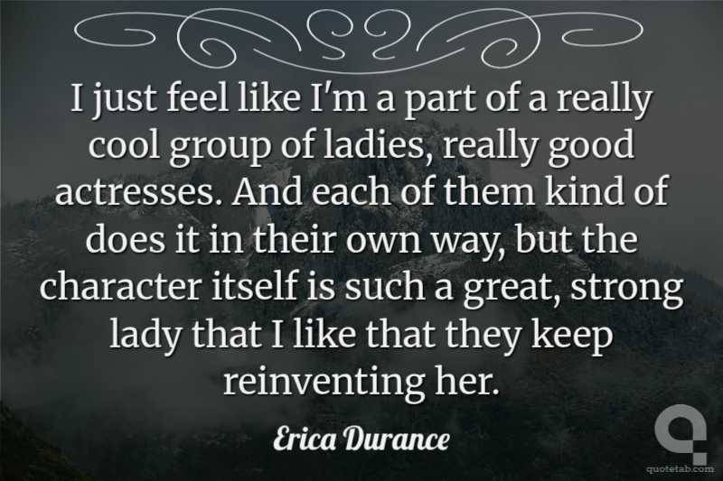 I just feel like I'm a part of a really cool group of ladies, really good actresses. And each of them kind of does it in their own way, but the character itself is such a great, strong lady that I like that they keep reinventing her.