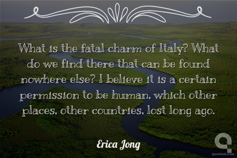 What is the fatal charm of Italy? What do we find there that can be found nowhere else? I believe it is a certain permission to be human, which other places, other countries, lost long ago.