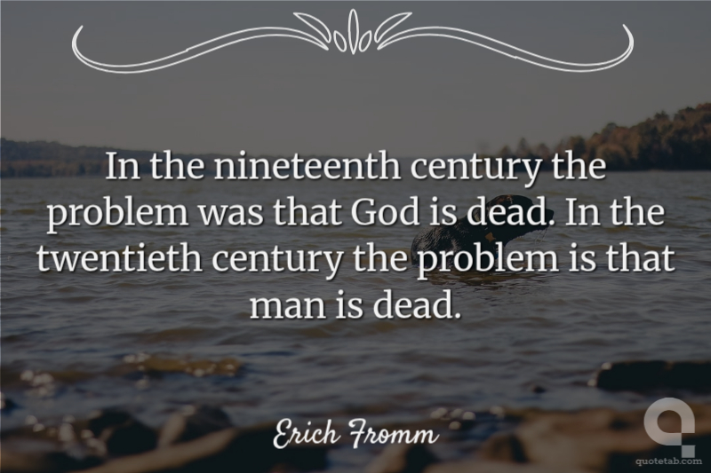 In the nineteenth century the problem was that God is dead. In the twentieth century the problem is that man is dead.
