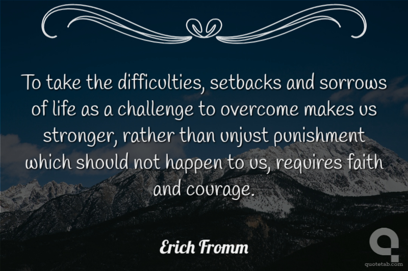 To take the difficulties, setbacks and sorrows of life as a challenge to overcome makes us stronger, rather than unjust punishment which should not happen to us, requires faith and courage.