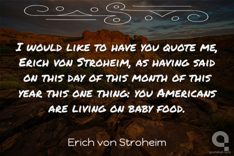 I would like to have you quote me, Erich von Stroheim, as having said on this day of this month of this year this one thing: you Americans are living on baby food.