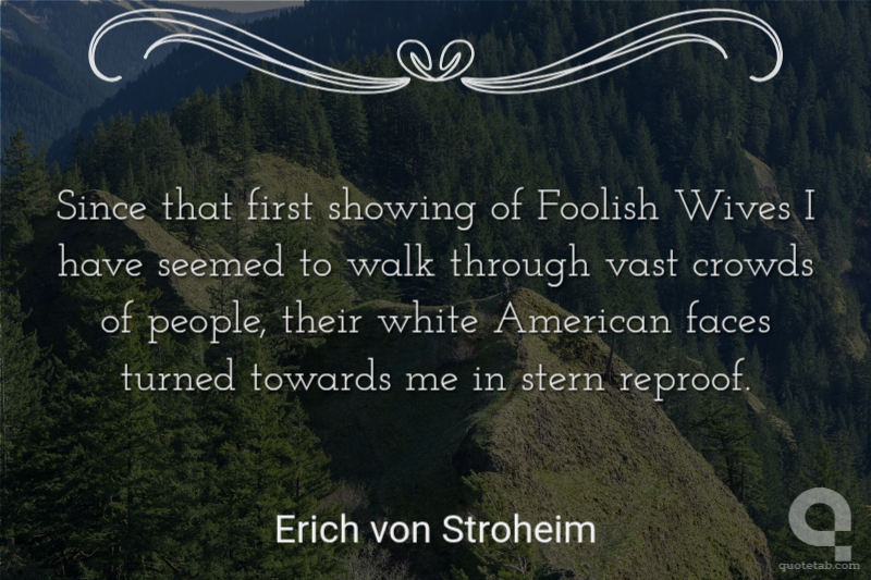 Since that first showing of Foolish Wives I have seemed to walk through vast crowds of people, their white American faces turned towards me in stern reproof.