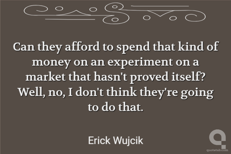 Can they afford to spend that kind of money on an experiment on a market that hasn't proved itself? Well, no, I don't think they're going to do that.