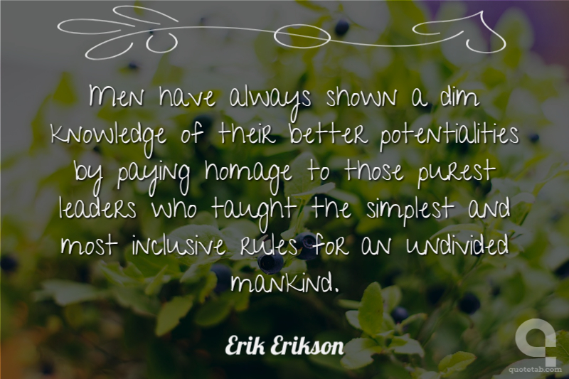 Men have always shown a dim knowledge of their better potentialities by paying homage to those purest leaders who taught the simplest and most inclusive rules for an undivided mankind.