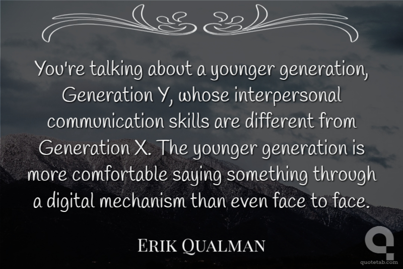 You're talking about a younger generation, Generation Y, whose interpersonal communication skills are different from Generation X. The younger generation is more comfortable saying something through a digital mechanism than even face to face.