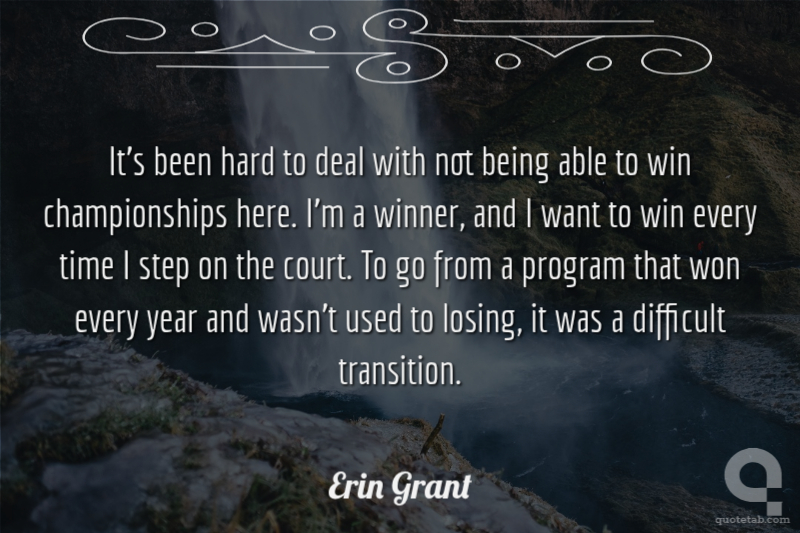 It's been hard to deal with not being able to win championships here. I'm a winner, and I want to win every time I step on the court. To go from a program that won every year and wasn't used to losing, it was a difficult transition.