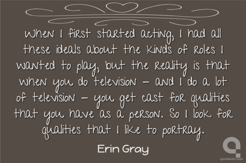 When I first started acting, I had all these ideals about the kinds of roles I wanted to play, but the reality is that when you do television - and I do a lot of television - you get cast for qualities that you have as a person. So I look for qualities that I like to portray.