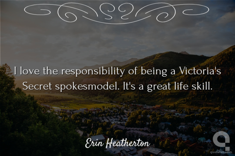I love the responsibility of being a Victoria's Secret spokesmodel. It's a great life skill.