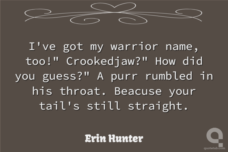 I've got my warrior name, too!" Crookedjaw?" How did you guess?" A purr rumbled in his throat. Beacuse your tail's still straight.