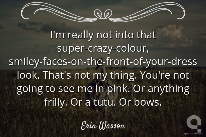 I'm really not into that super-crazy-colour, smiley-faces-on-the-front-of-your-dress look. That's not my thing. You're not going to see me in pink. Or anything frilly. Or a tutu. Or bows.