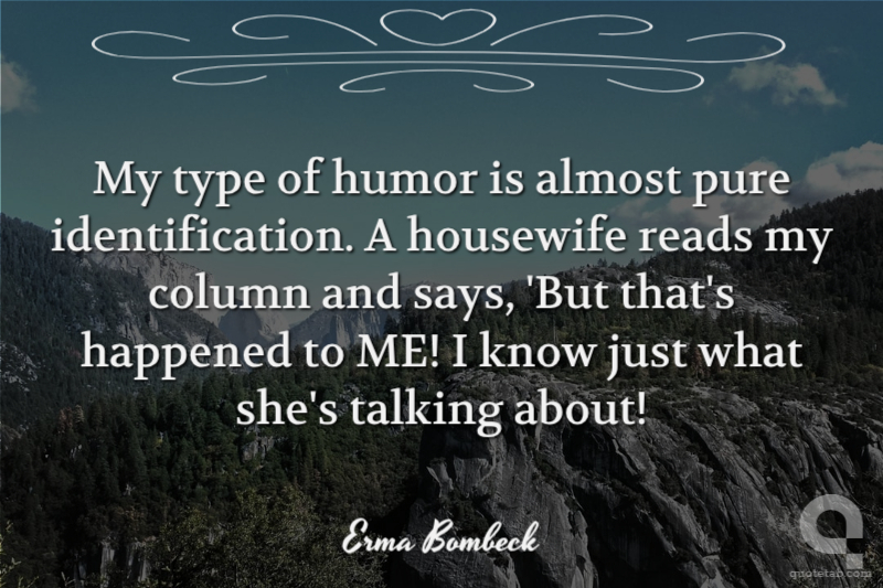 My type of humor is almost pure identification. A housewife reads my column and says, 'But that's happened to ME! I know just what she's talking about!