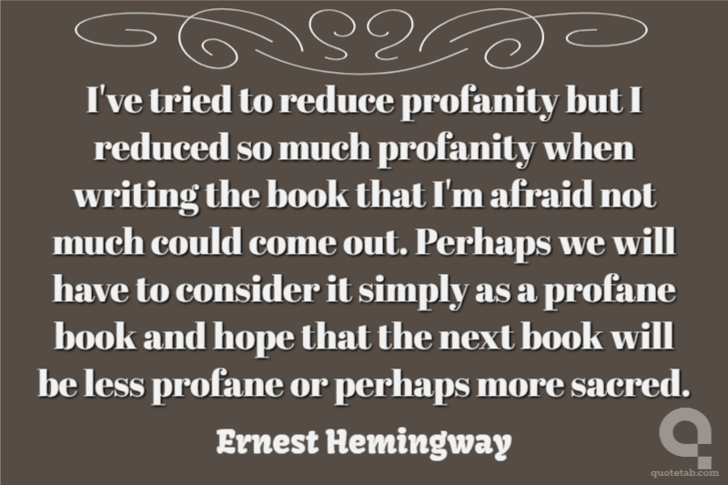 I've tried to reduce profanity but I reduced so much profanity when writing the book that I'm afraid not much could come out. Perhaps we will have to consider it simply as a profane book and hope that the next book will be less profane or perhaps more sacred.