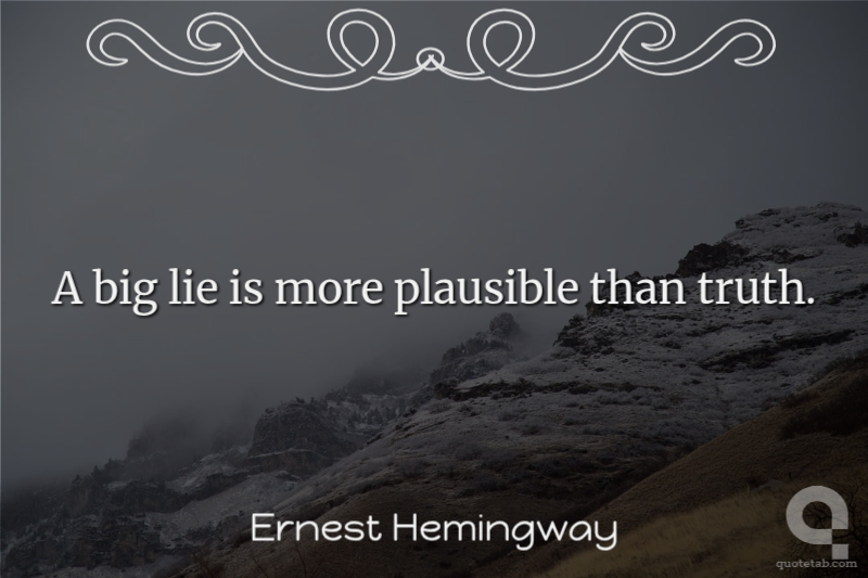 In Africa a thing is true at first light and a lie by noon and you have no more respect for it than for the lovely, perfect wood-fringed lake you see across the sun-baked salt plain. You have walked across that plain in the morning and you know that no such lake is there. But now it is there absolutely true, beautiful and believable.