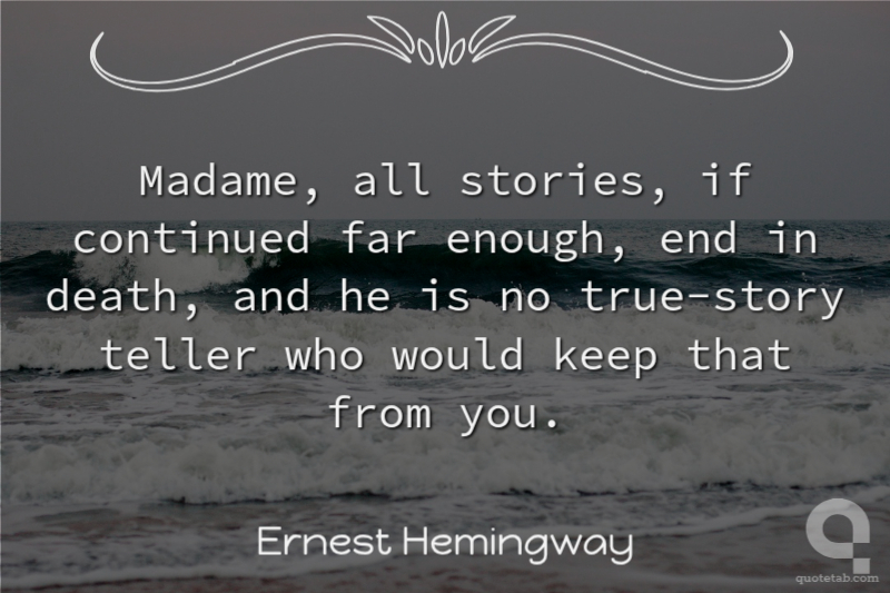 Madame, all stories, if continued far enough, end in death, and he is no true-story teller who would keep that from you.