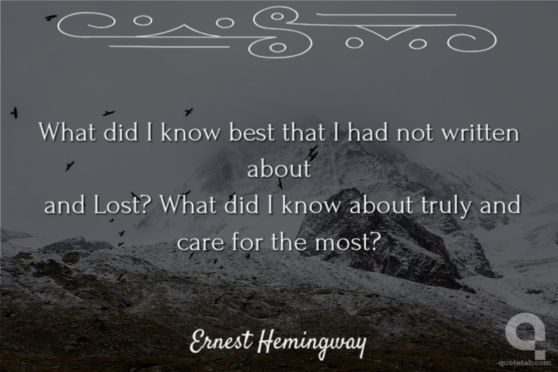 What did I know best that I had not written about and Lost? What did I know about truly and care for the most?