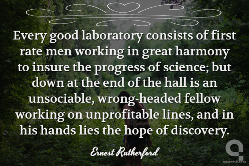 Every good laboratory consists of first rate men working in great harmony to insure the progress of science; but down at the end of the hall is an unsociable, wrong-headed fellow working on unprofitable lines, and in his hands lies the hope of discovery.