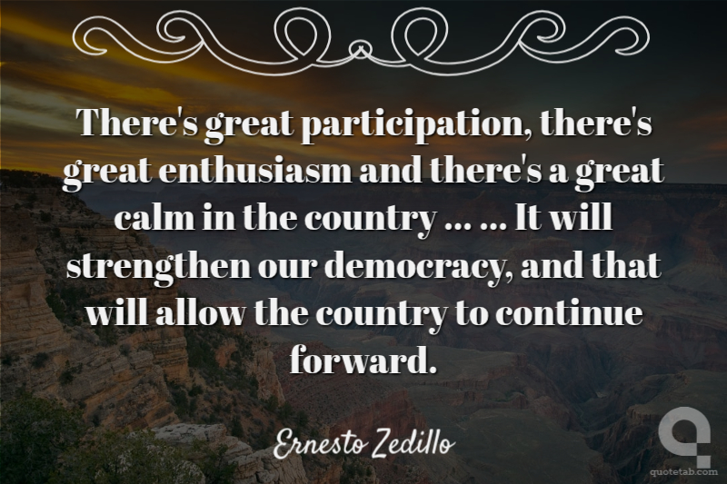 There's great participation, there's great enthusiasm and there's a great calm in the country ... ... It will strengthen our democracy, and that will allow the country to continue forward.
