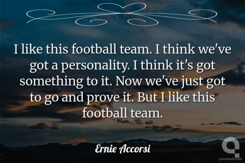 I like this football team. I think we've got a personality. I think it's got something to it. Now we've just got to go and prove it. But I like this football team.