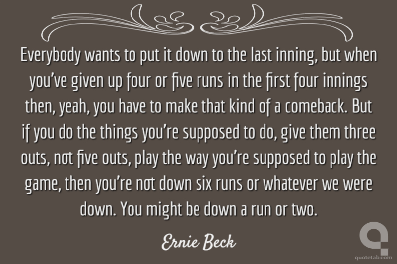 Everybody wants to put it down to the last inning, but when you've given up four or five runs in the first four innings then, yeah, you have to make that kind of a comeback. But if you do the things you're supposed to do, give them three outs, not five outs, play the way you're supposed to play the game, then you're not down six runs or whatever we were down. You might be down a run or two.