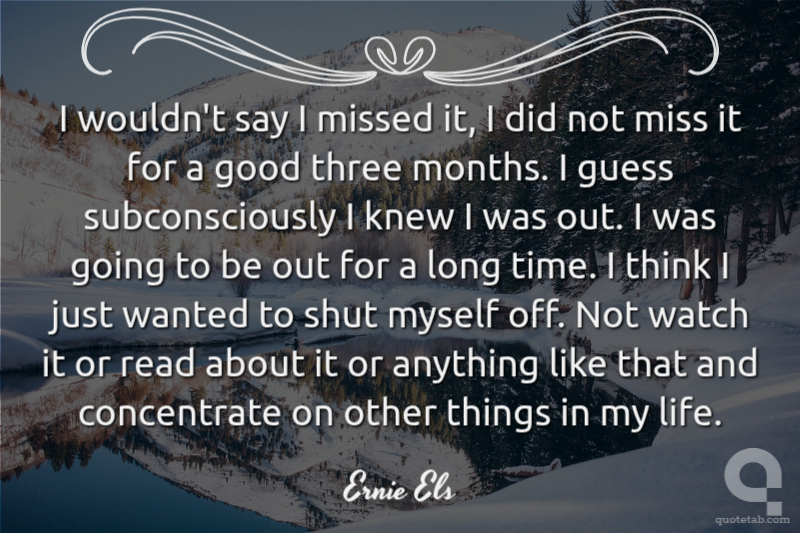 I wouldn't say I missed it, I did not miss it for a good three months. I guess subconsciously I knew I was out. I was going to be out for a long time. I think I just wanted to shut myself off. Not watch it or read about it or anything like that and concentrate on other things in my life.